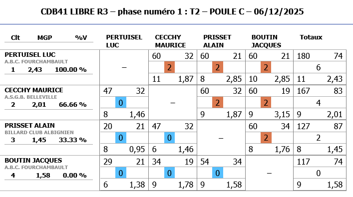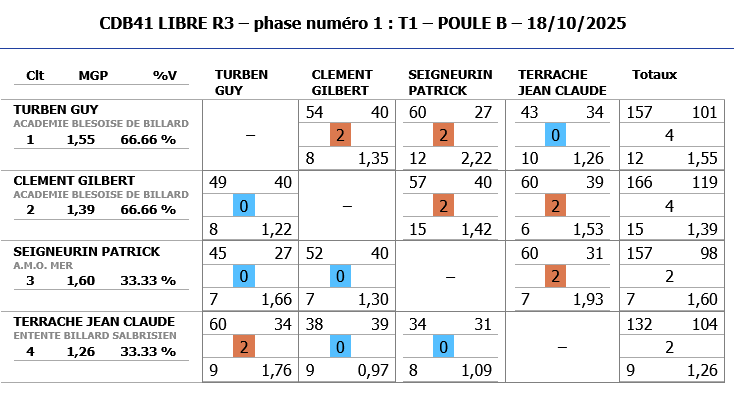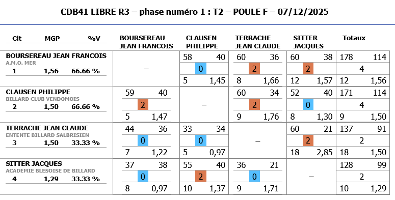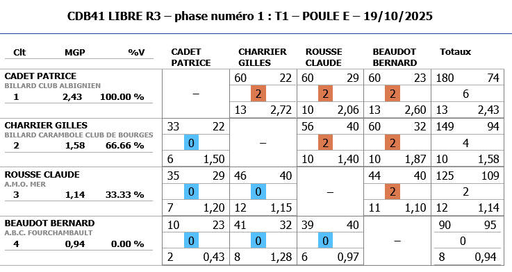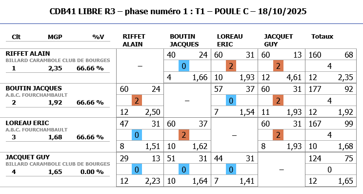 A noter également les bonnes performances de Jeaan-Charles BESSON de CHATEAUROUX (nouveau joueur) qui malheureusement dépassent les limites de la catégorie R3 et ne peut continuer dans cette compétition.
