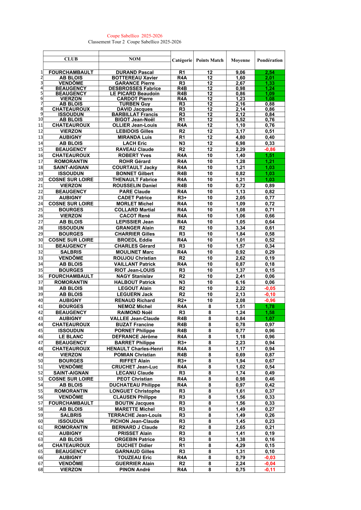 Résultats et classement ci-dessous.