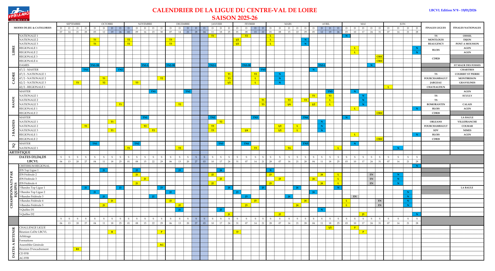 Vous trouverez ci-dessous le calendrier sportif (édition 2), le document sur la réforme des catégories, la demande d'organisation ainsi que les calendriers LBCVL (édition 2) et CDB41 (edition 1).