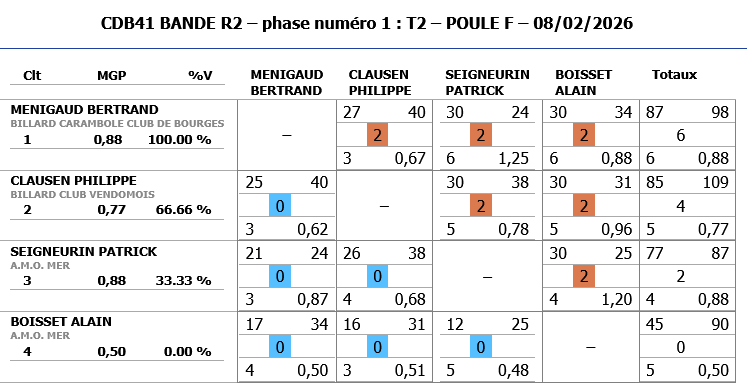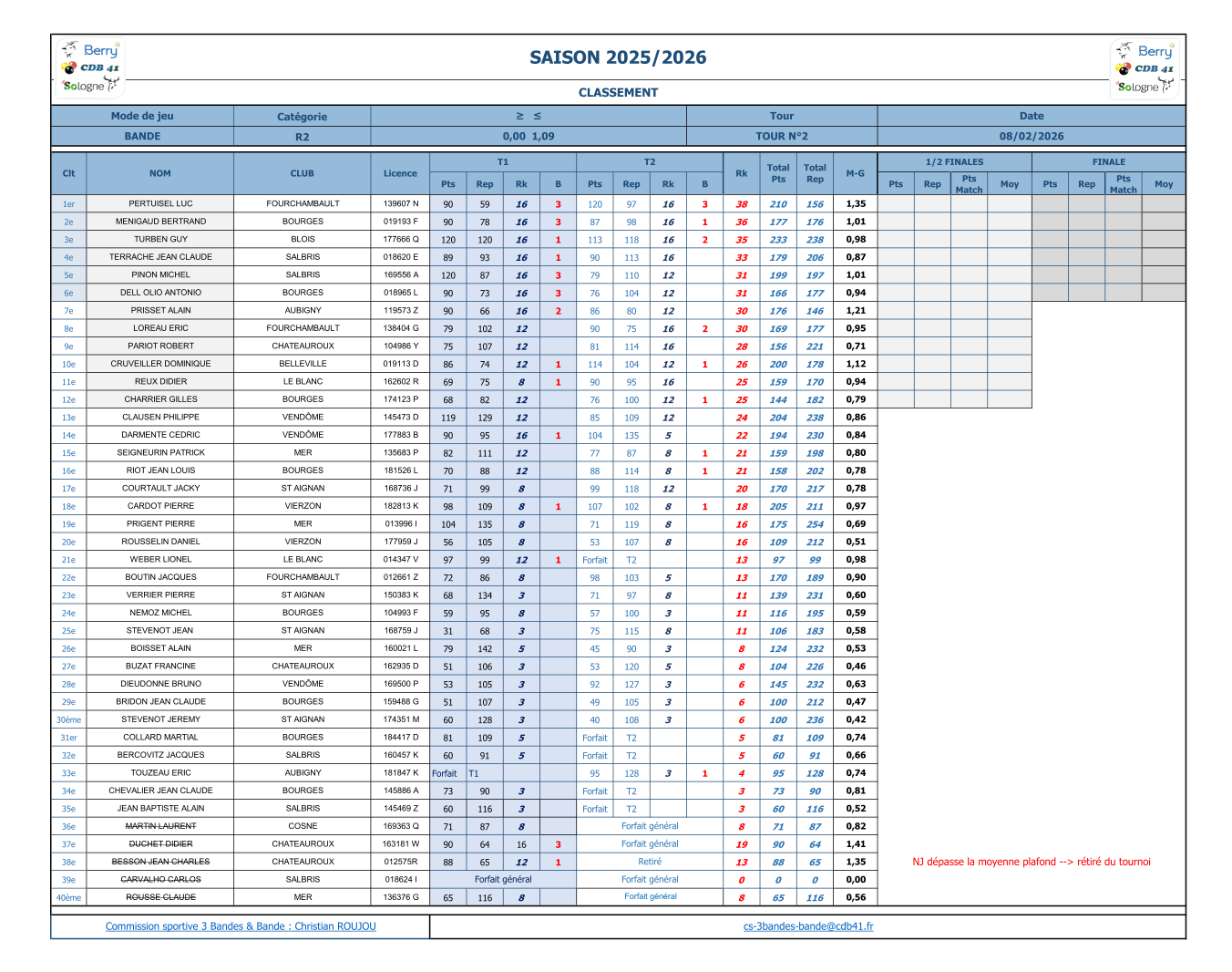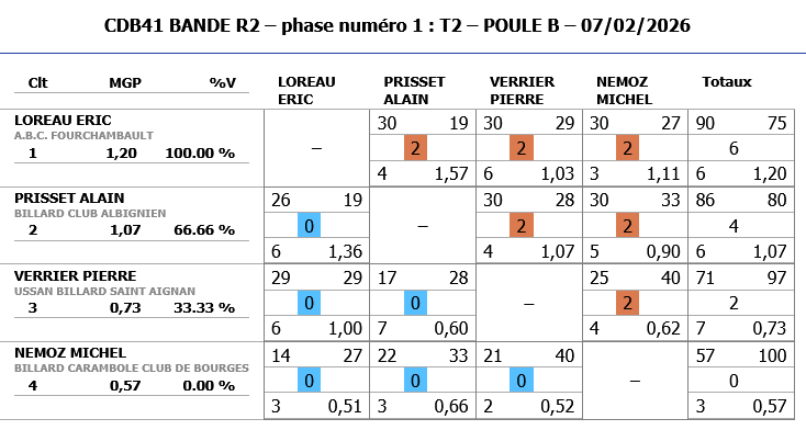 Meilleure MG: 1,23 et meilleure MP: 1,76 pour PERTUISEL Luc de FOURCHAMBAULT.