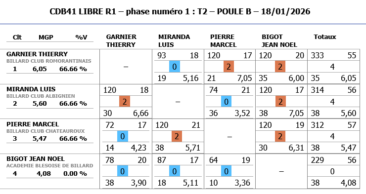 Resultats Libre R1 T2 2025 2026 poule AResultats Libre R1 T2 2025 2026 poule B