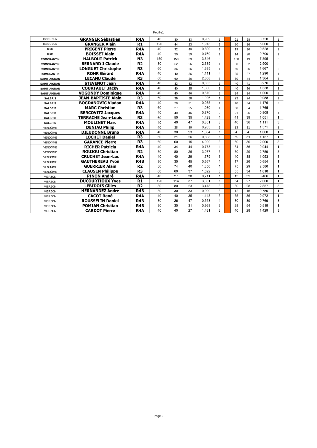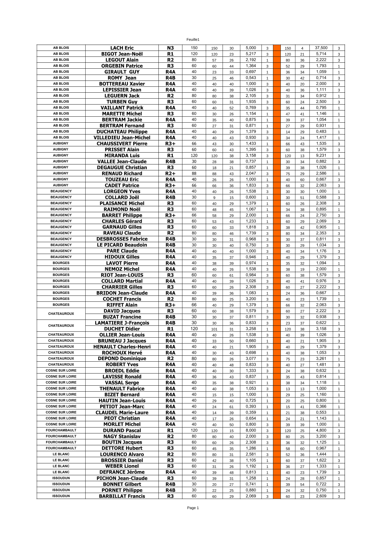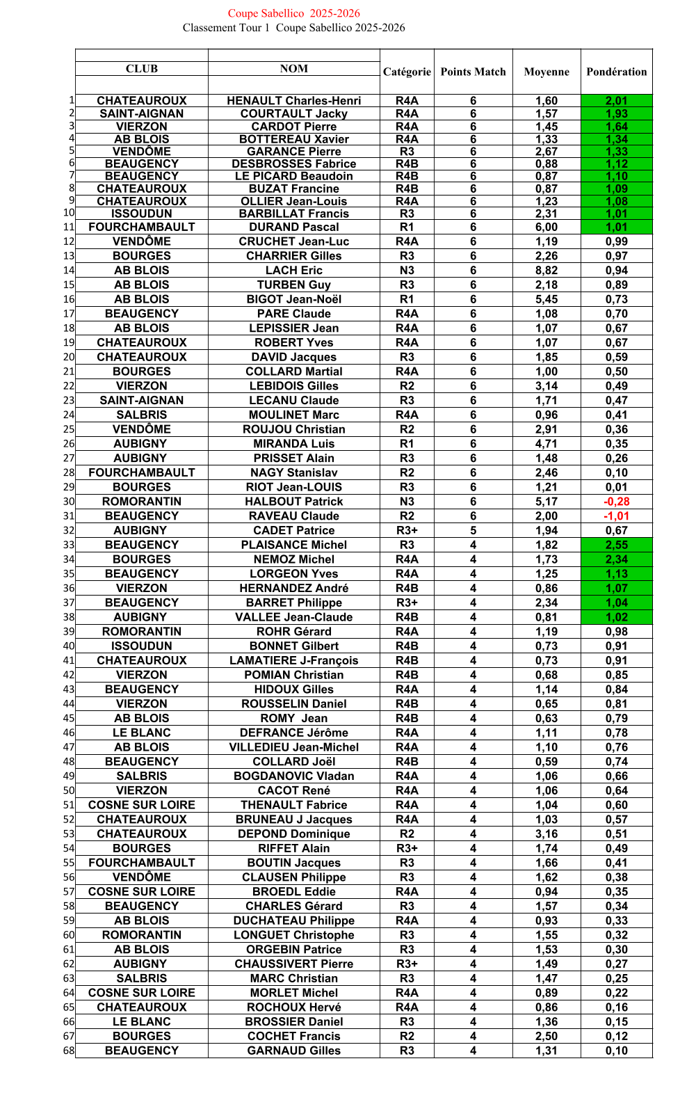 Résultats et classement aprés le tour 1 ci-dessous et la nouvelle feuille de match à utiliser pour la suite.